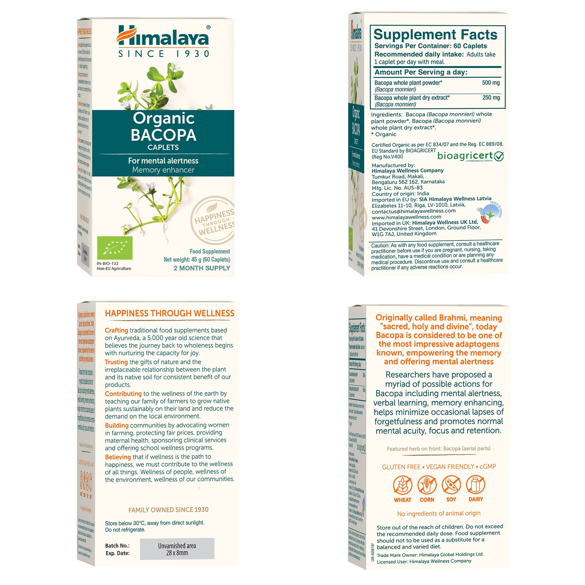 Ingredientes: Bacopa (Bacopa monnieri) pó de planta inteira* (500 mg), Bacopa (Bacopa monnieri) extrato seco de planta inteira* (250 mg); cápsula vegetal (amido modificado, glicerina) e agentes de enchimento naturais conforme formulação. *Ingredientes de origem orgânica conforme certificação.