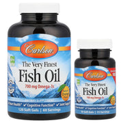 Óleo de peixe The Very Finest - 700 mg de ômega-3, laranja natural - 120 + 30 cápsulas gelatinosas - Carlson Labs