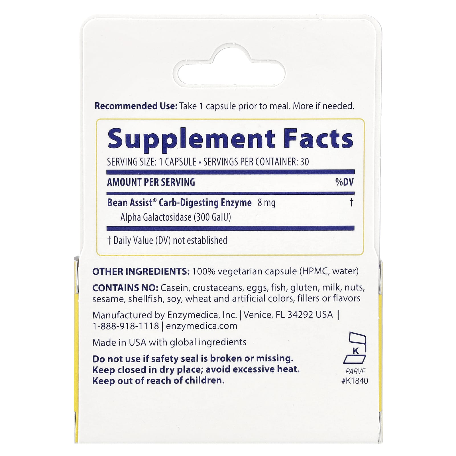 | Enzima digestiva BeanAssist® — Alfa-galactosidase (300 GaIU) | 8 mg | * |