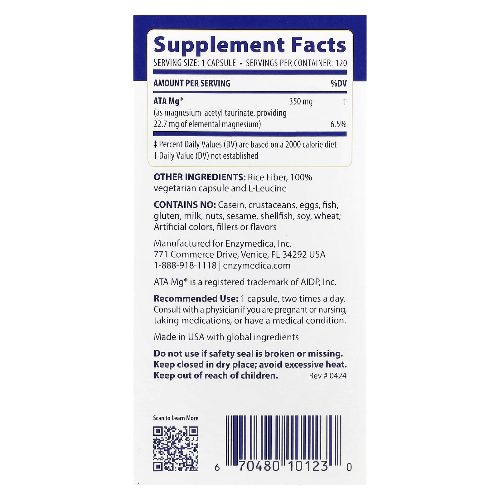 AA Mg® é uma forma patenteada que combina magnésio com taurina para melhorar a transferência de magnésio para as células e facilitar a penetração através da barreira hematoencefálica. O produto é fabricado nos Estados Unidos com ingredientes provenientes de várias regiões do mundo.