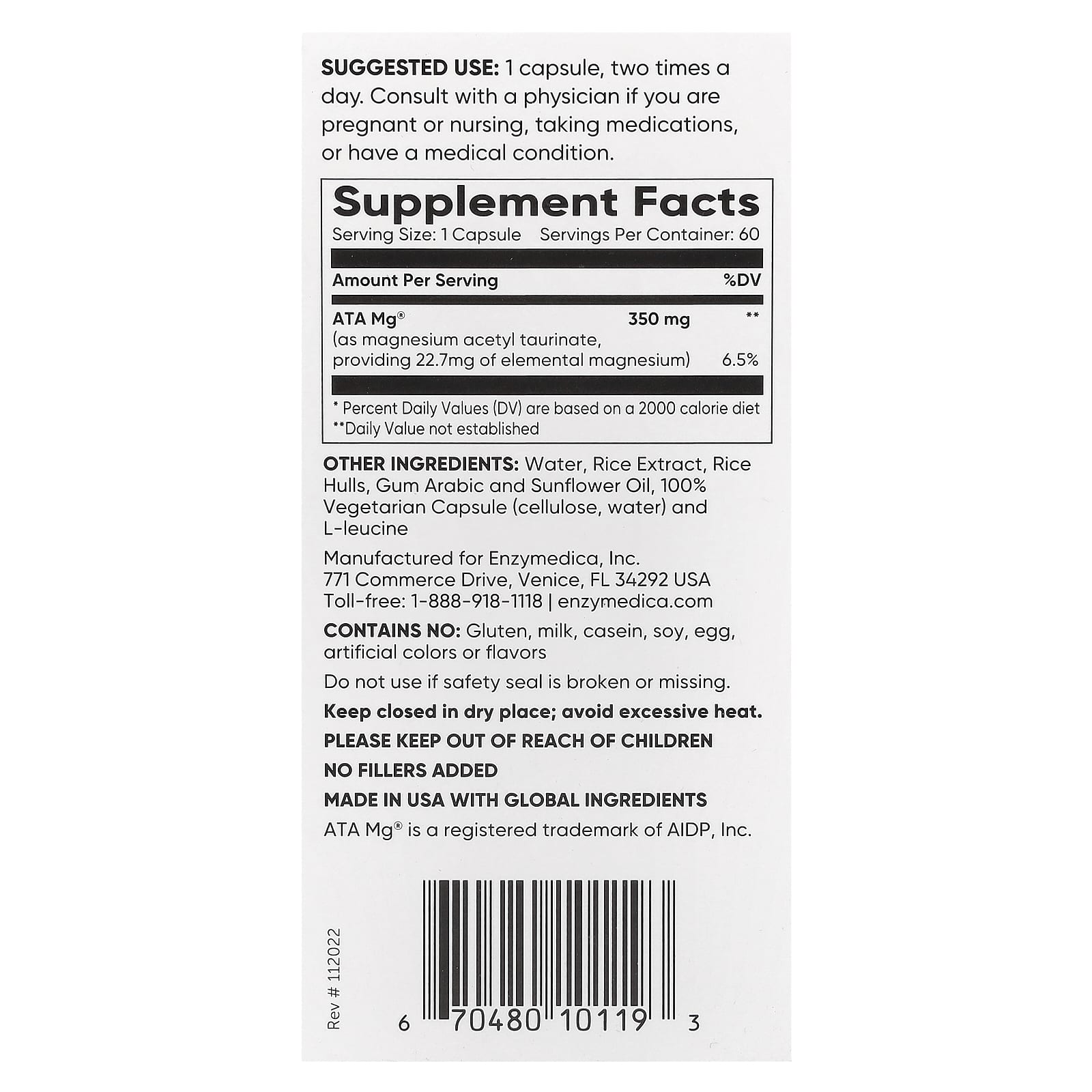 AA Mg® é uma forma patenteada que combina magnésio com acetil‑taurina para facilitar a transferência de iões de magnésio para as células e melhorar a penetração na barreira hematoencefálica. O produto é fabricado nos Estados Unidos com ingredientes provenientes de diversas origens.