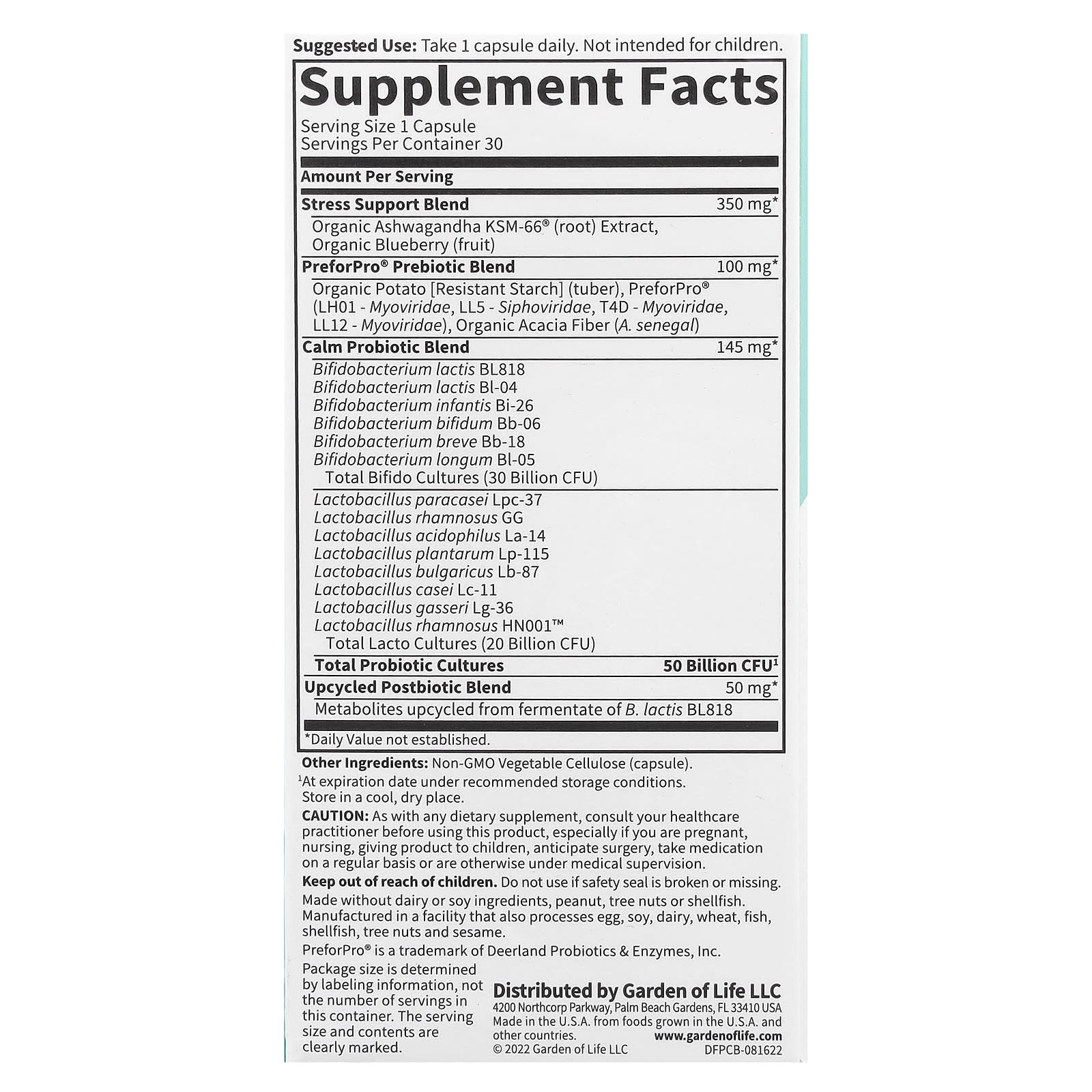 Probióticos Formulados pelo Dr. Calm 50 Billion - 30 cápsulas, Garden of Life
