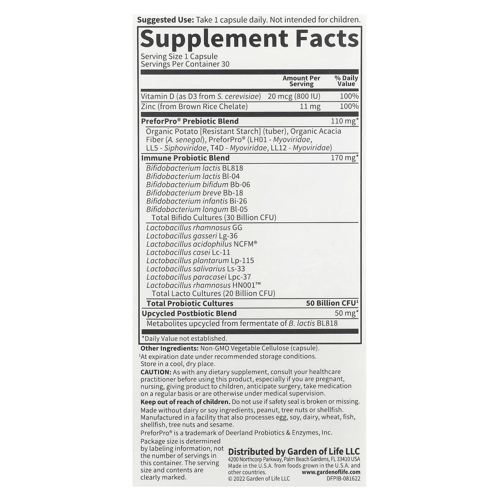 Probióticos Formulados pelo Dr. Immune 50 Billion - 30 cápsulas vegetais, Garden of Life
