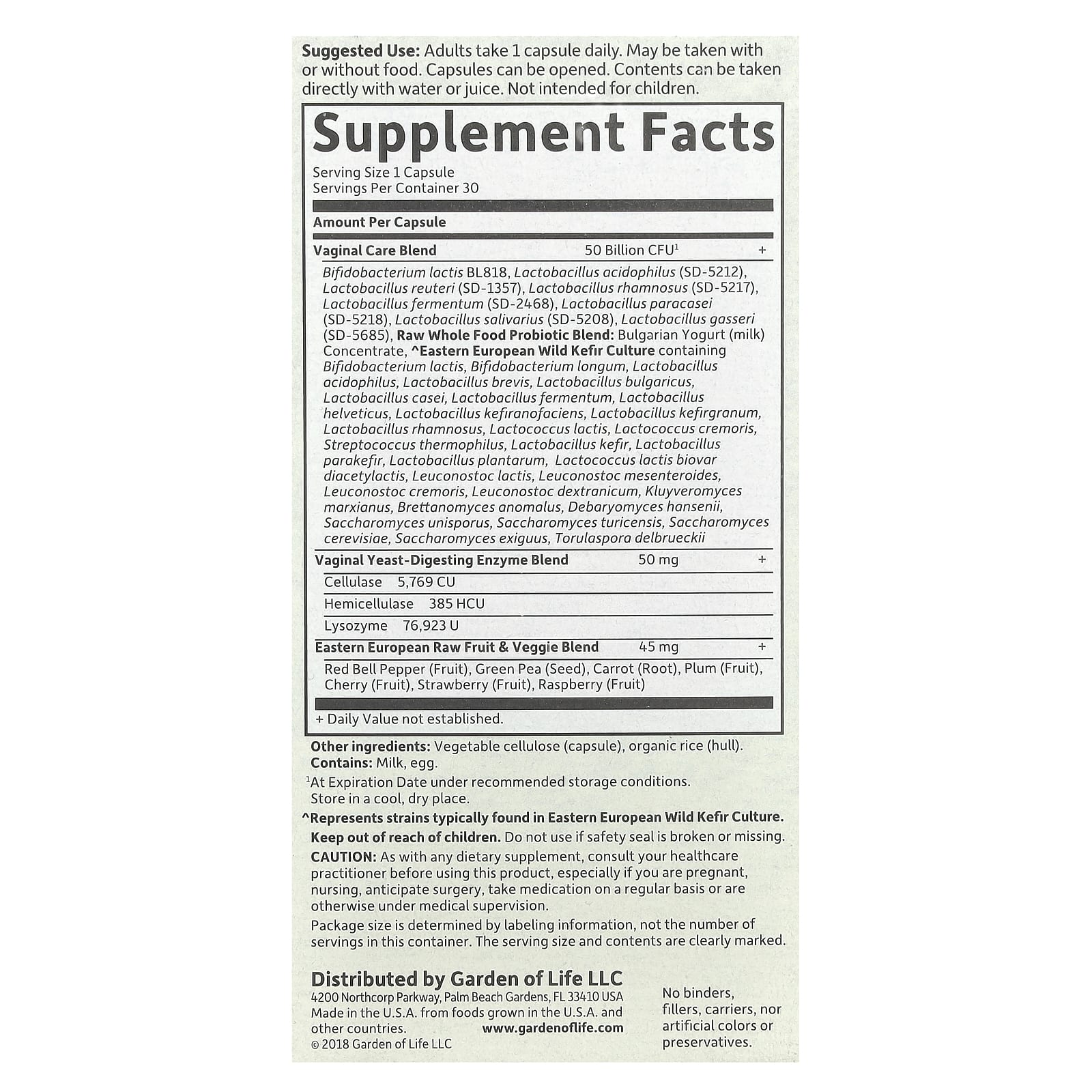 Raw Probiotics Vaginal Care (Estável em prateleira) - 30 cápsulas vegetais, Garden of Life