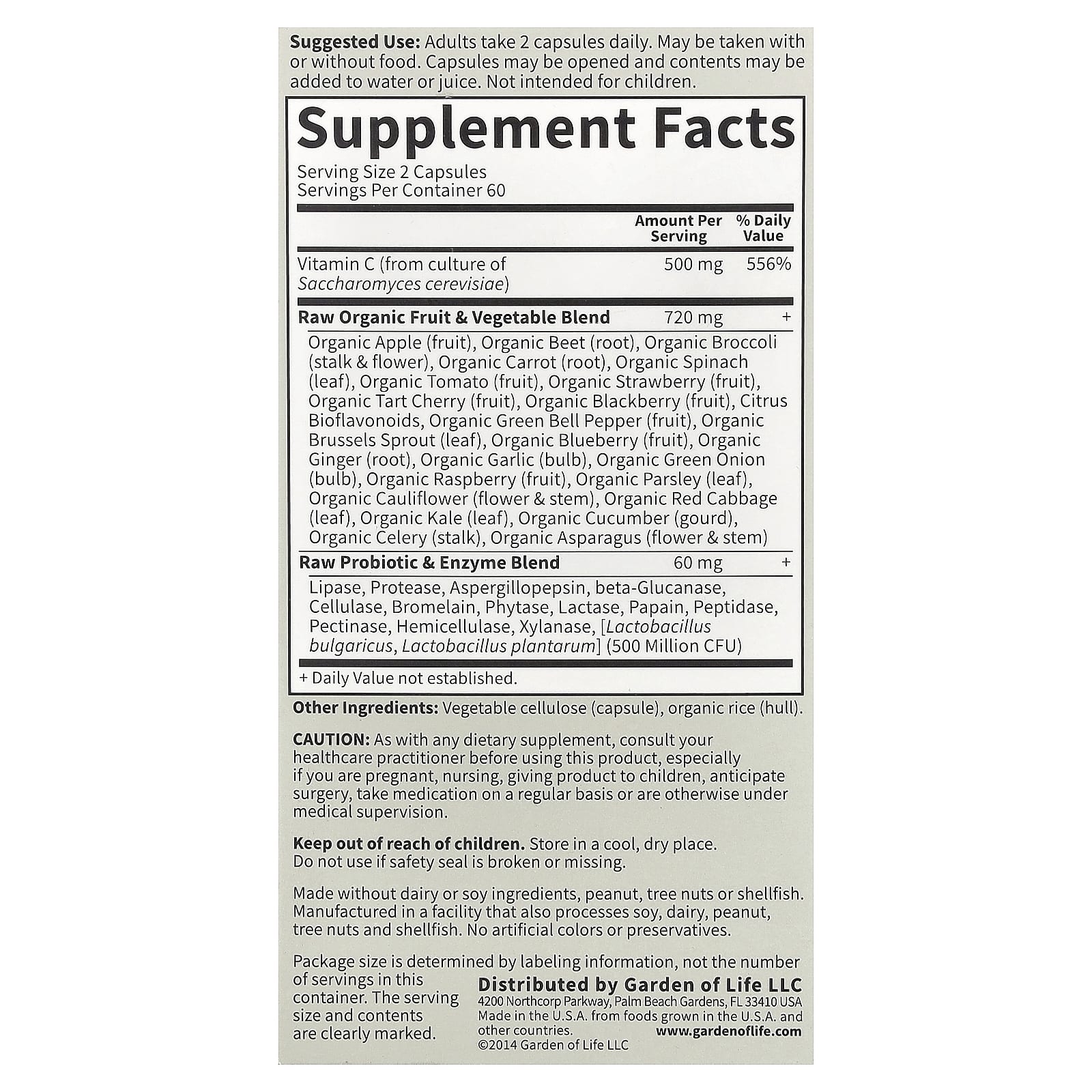 Vitamin Code Vitamina C Crua - 120 cápsulas veganas, Garden of Life