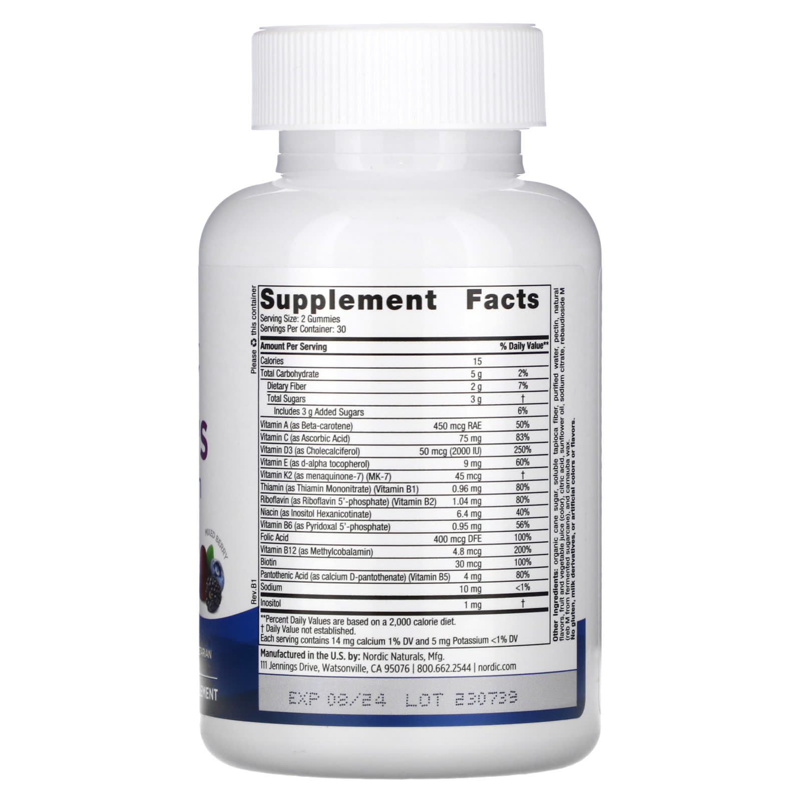 Gomas multivitamínicas com sabor a frutas vermelhas para apoiar a saúde da pele, cabelo e ossos, ao mesmo tempo que contribuem para a energia e a imunidade diária. Fórmula vegetariana com 12 vitaminas essenciais; tomar 2 gomas por dia com uma refeição.
