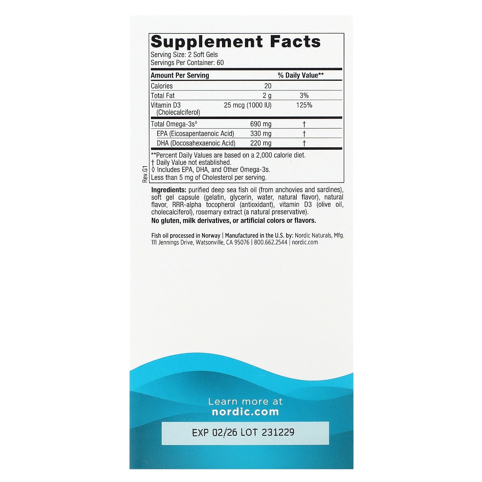 Ômega-3D - 690mg Limão - 120 cápsulas gelatinosas, Nordic Naturals