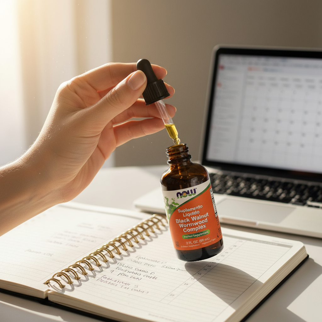 Extratos de noz‑preta, absinto e cravo têm uso tradicional em fitoterapia para protocolos cíclicos e apoios digestivos. O formato líquido permite ajustar a dose com precisão e facilita a toma por quem tem dificuldade em engolir comprimidos.