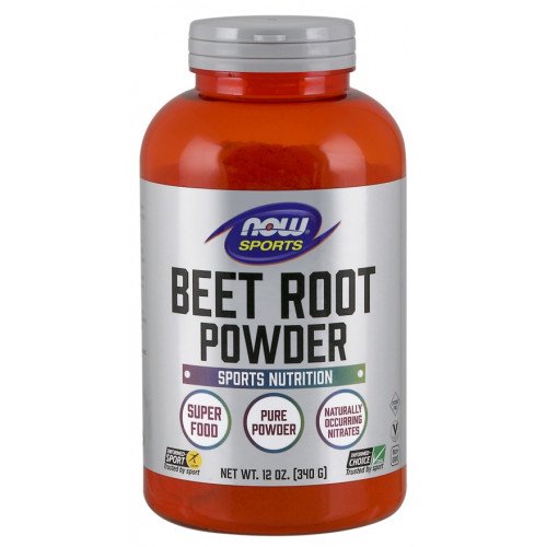 Pó de raiz de beterraba Now Foods — embalagem de 340 g. Produto vegetal concentrado, prático para adicionar a sumos, batidos e receitas, permitindo diversificar a ingestão de vegetais. Tomar conforme a dose recomendada e misturar em água ou bebida à escolha.