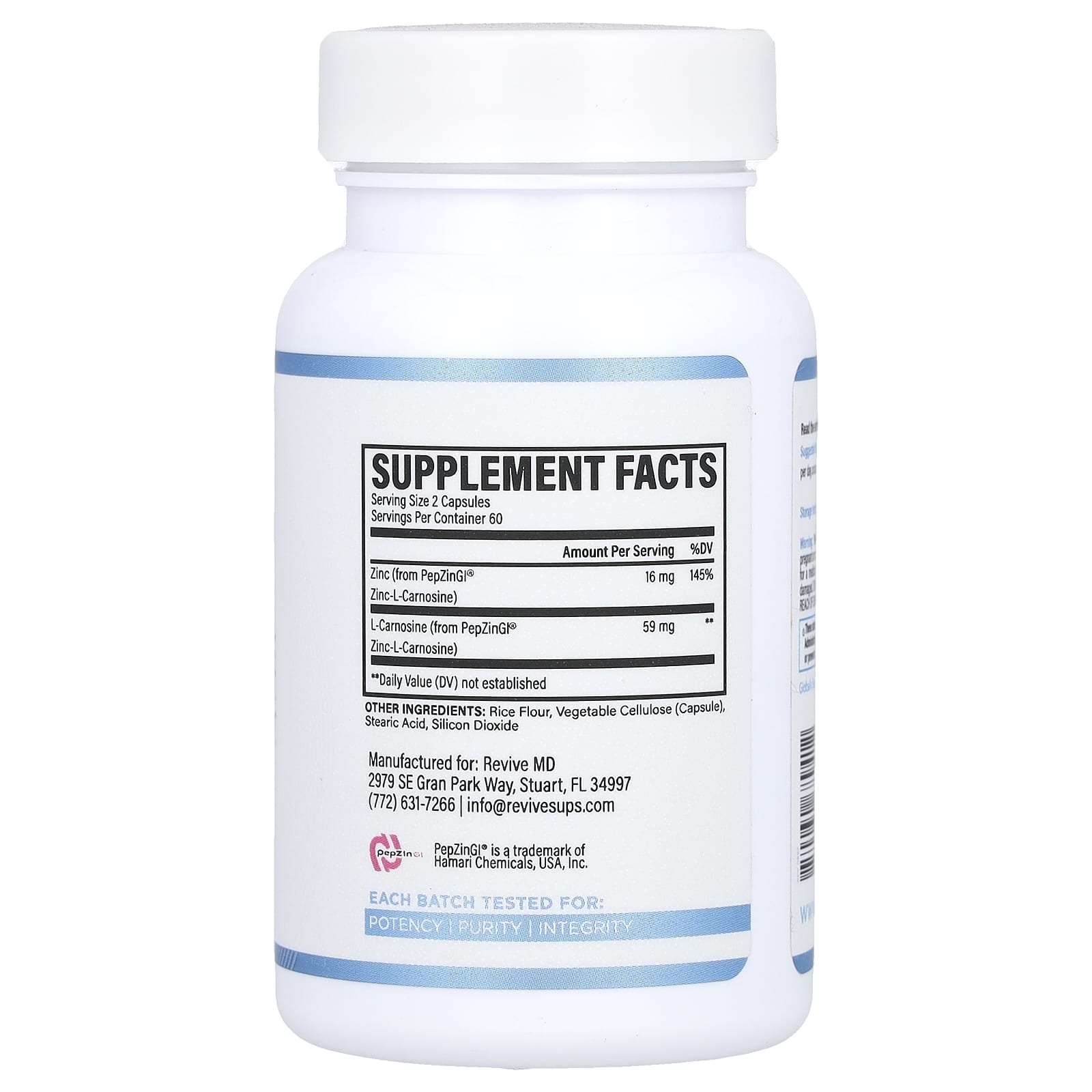 Zinco Carnosina - 120 cápsulas vegetais - Revive