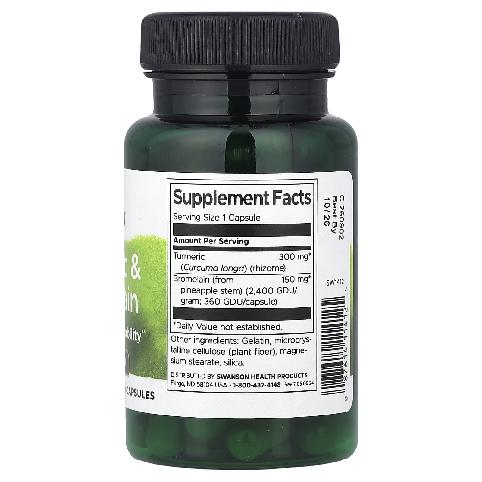 Cúrcuma e bromelaína, 60 caps, Swanson
