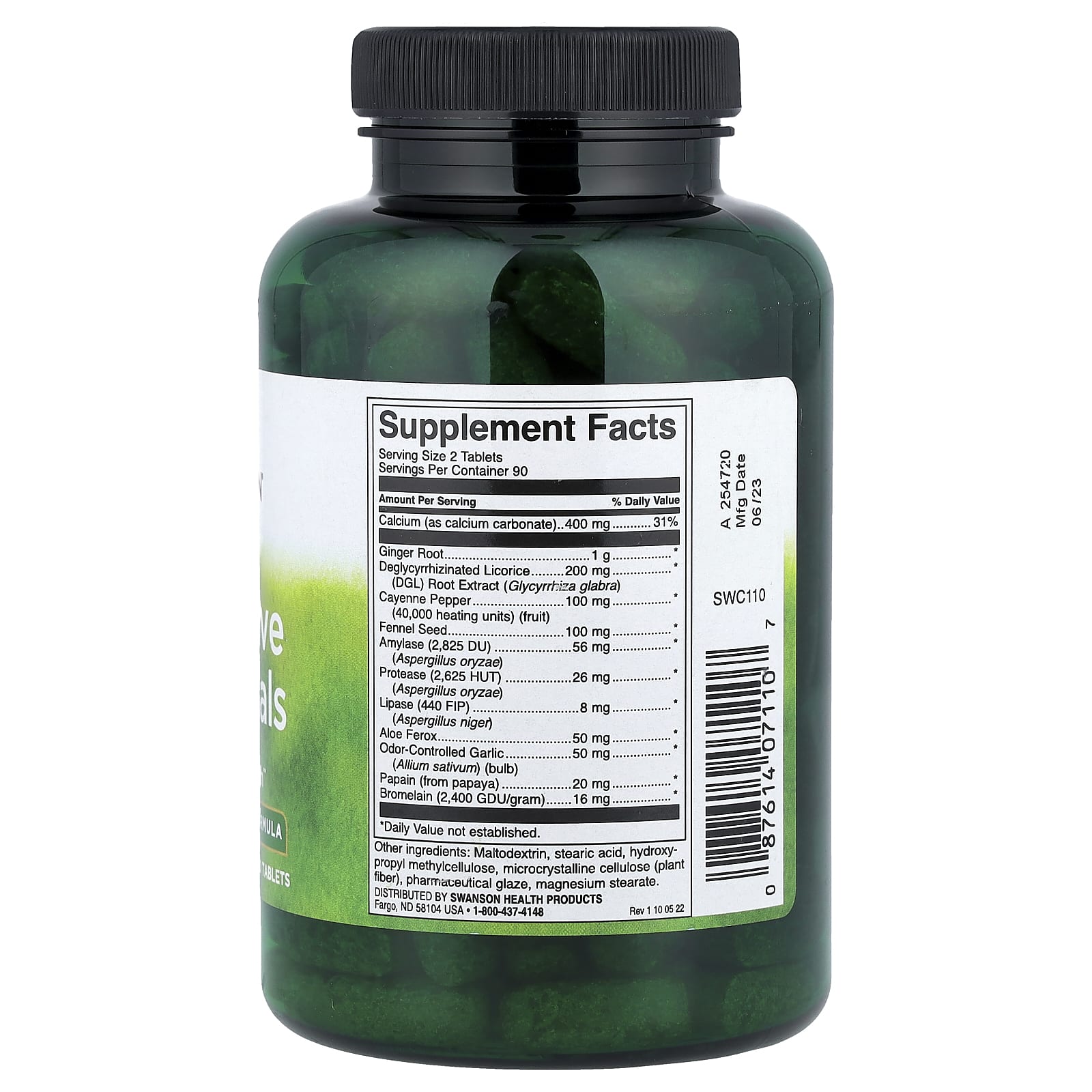 Fórmula desenvolvida pela Swanson que combina extratos vegetais (gengibre, papaína do mamão, bromelaína do ananás) com enzimas produzidas por fermentação controlada (Aspergillus). Produzido segundo boas práticas industriais para suplementos alimentares.