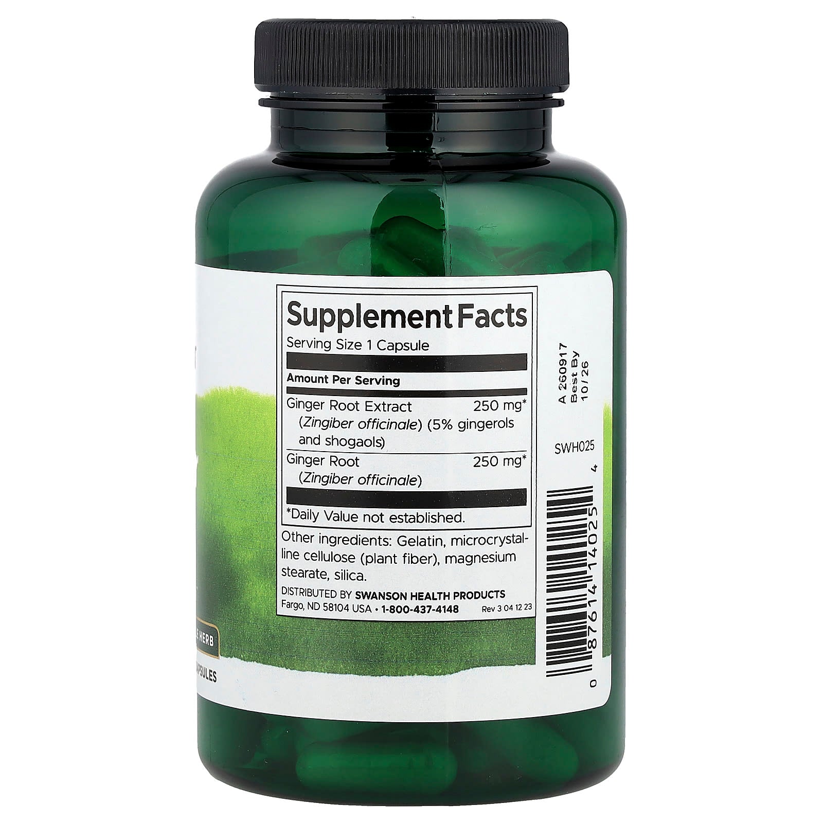 Formulado a partir de raiz de gengibre e extrato padronizado para garantir uma concentração estável de gingeróis e shogaóis. Produzido pela Swanson, marca com presença no mercado desde 1969, seguindo procedimentos de fabrico e controlo de qualidade do fabricante.