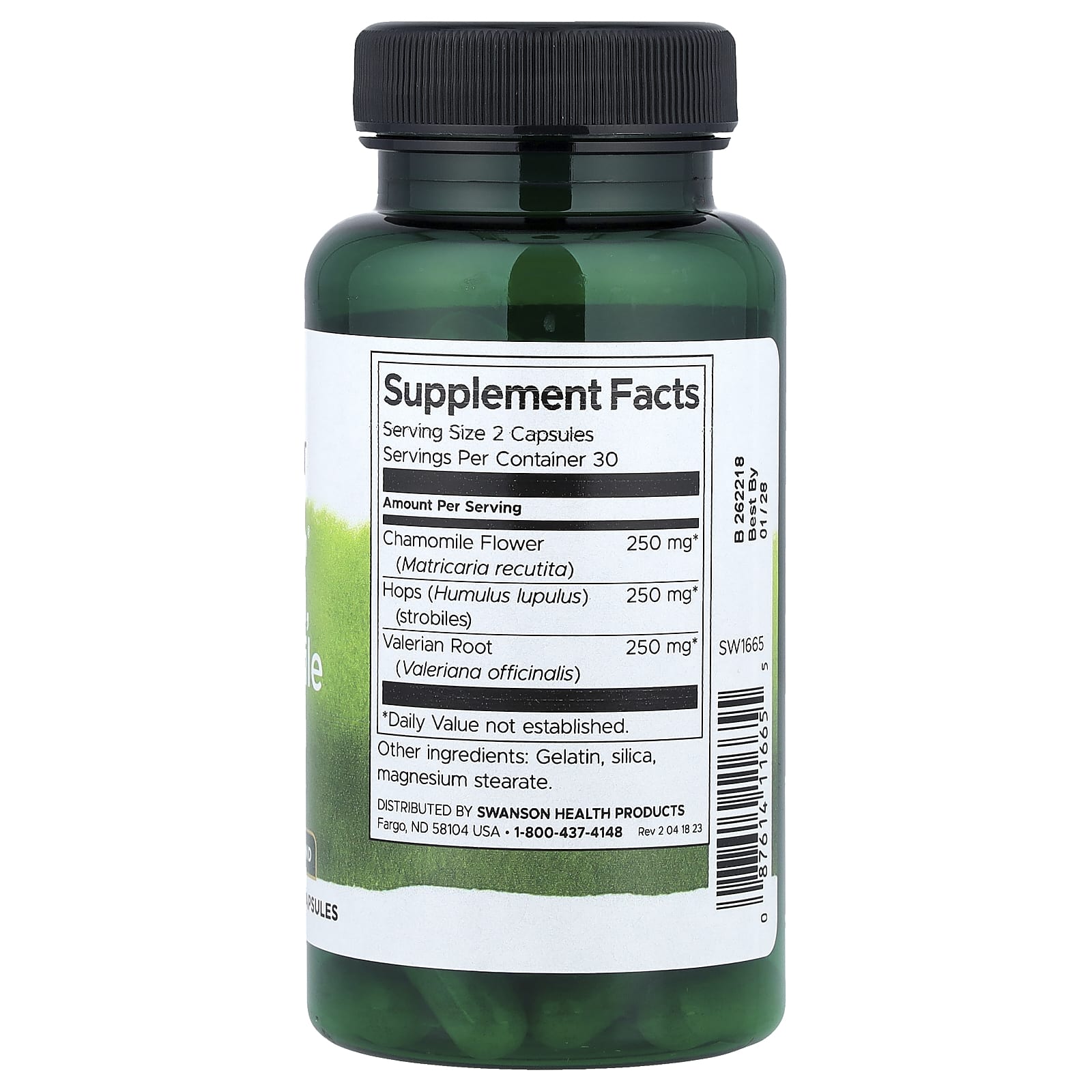 Valeriana, Camomila e Lúpulo de Espectro Completo, 60 caps, Swanson