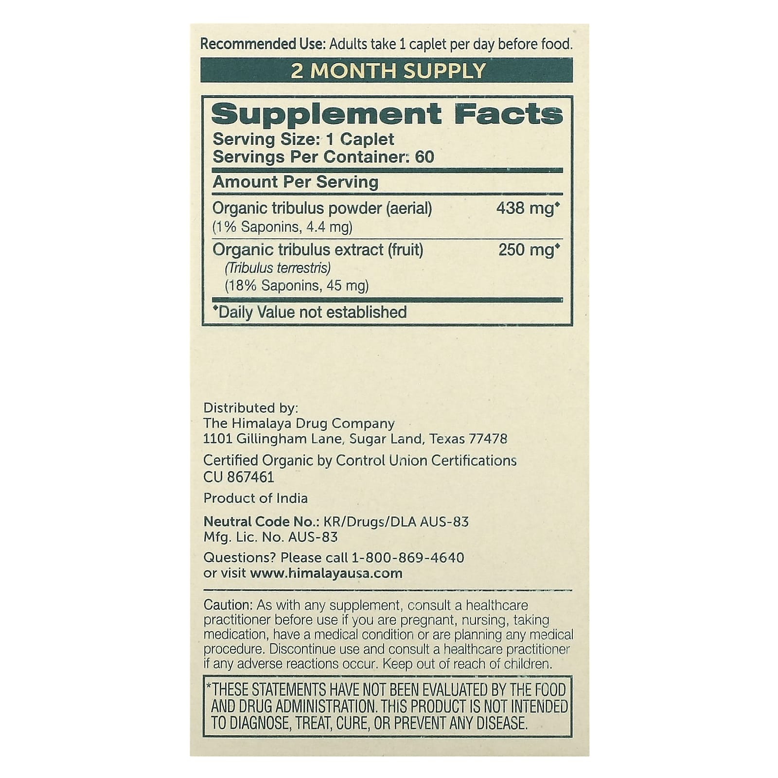 Formulado pela Himalaya com Tribulus de colheita selvagem certificada e fabricado em instalações que cumprem requisitos de qualidade do fabricante. Comercializado em Portugal através da Zundak.